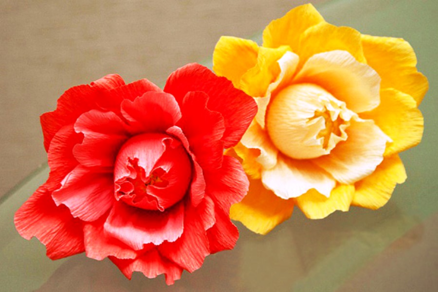 Следующим шагом будет окрашивание бутонов. Выбираем цветок, аккуратно разрезаем стебель на три-четыре части, окунаем его в ёмкости с красителями. Вода с растворённым красителем впитывается цветком, он окрашивает в соответствующие цвета.