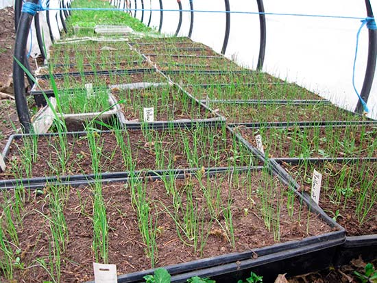 Чтобы обеспечить стабильный рост лука и его товарный вид, необходимо правильно организовать полив, а также следить за состоянием растений. Имейте ввиду, что в теплицах болезни распространяются довольно быстро, поэтому необходимо за этим следить. Если обустроить поликарбонатную теплицу возможности нет, а риск требуется минимизировать, также подойдет вариант выращивания репчатого лука. Для реализации такой идеи подойдут сорта альвина, даниловский, ред барон, кармен и многие другие.